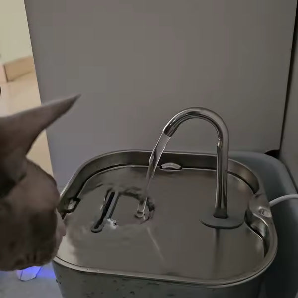 Our sleek stainless steel pet fountain provides fresh, flowing water that encourages your cats to drink more. Watch them enjoy every sip in peaceful harmony.